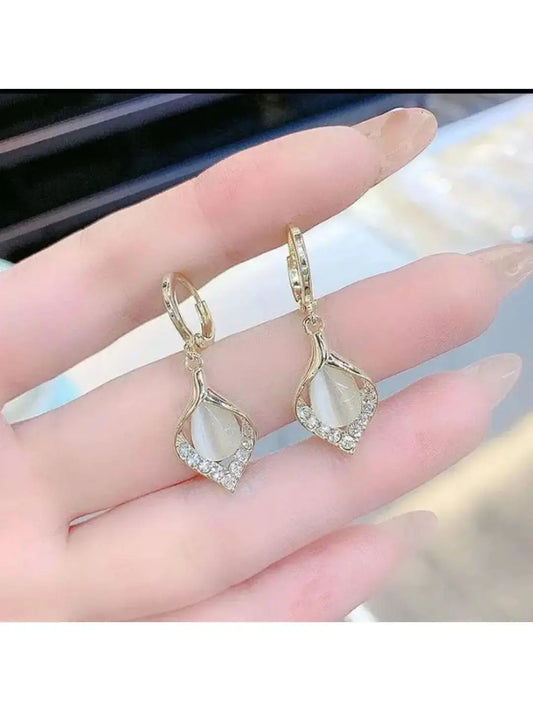 Water Drop Design with Crystal Accents and Opal Centre Earring