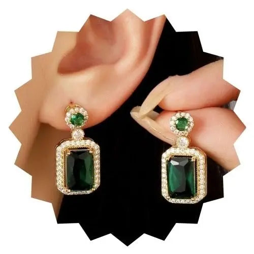 Aurelva Green Crystal Drop Gold Plated Earrings