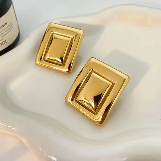 Aurelva Textured Square Stud Earrings - Gold Plated